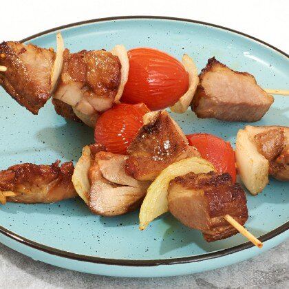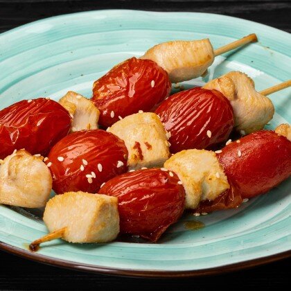 Шашлычки из филе атлантического лосося с шампиньонами под соусом "Терияки"